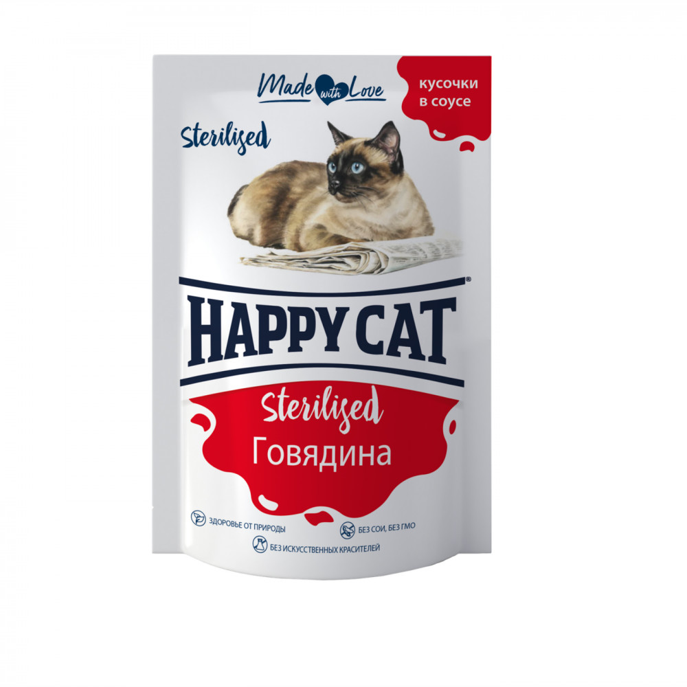 Happy Cat Говядина кусочки в соусе для стерилизованных кошек