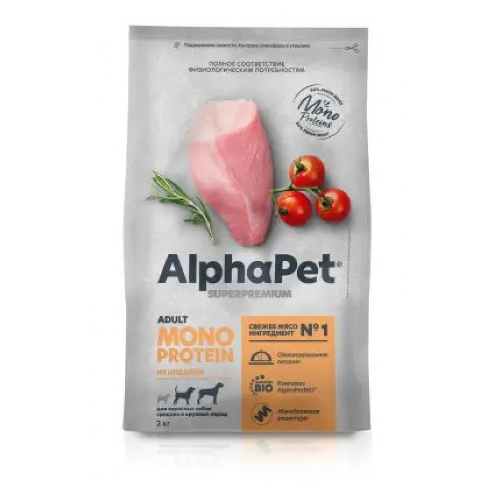 ALPHAPET Superpremium Monoprotein сухой корм для взрослых собак средних и крупных пород с индейкой 2 кг