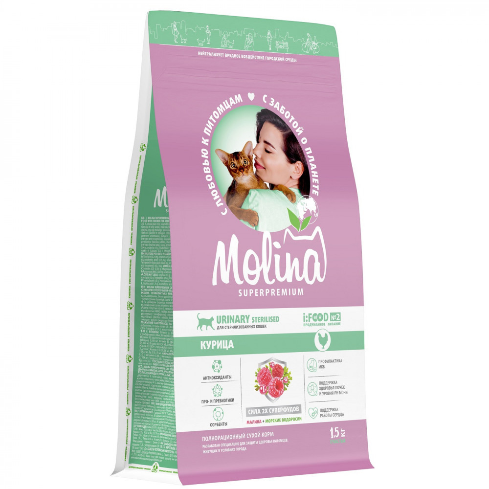 MOLINA SUPERPREMIUM Сухой корм с курицей для взрослых стерилизованных кошек. Профилактика МКБ. CAT STERILISED URINARY. CHICKEN, 1,5 кг