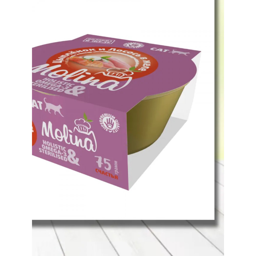MOLINA. Ламистер для взрослых кошек. Цыпленок и лосось в желе, 75 г