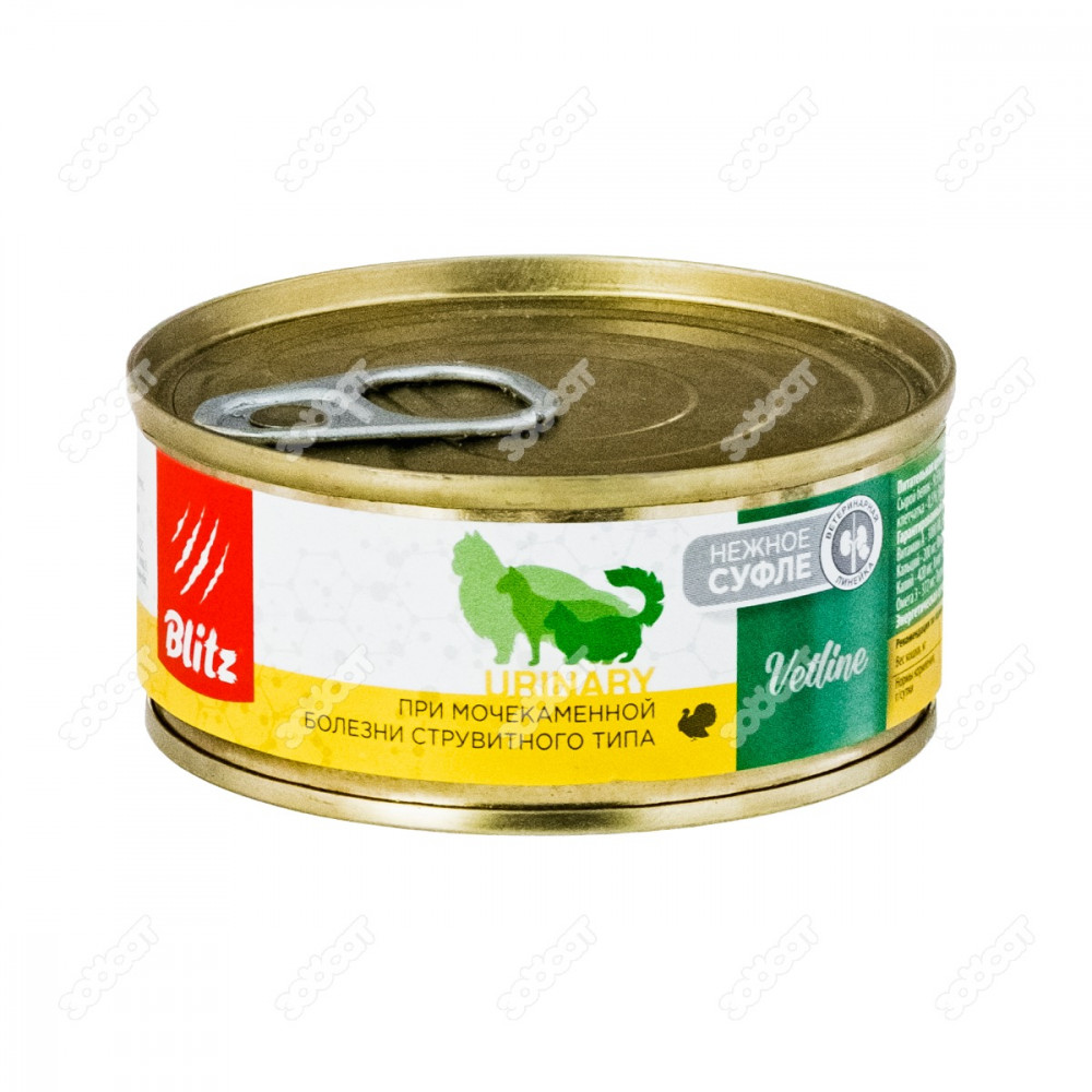 Blitz Cat Vetline Urinary 100гр. корм консервированный полнорационный диетический для кошек при мочекаменной болезни струвитного типа