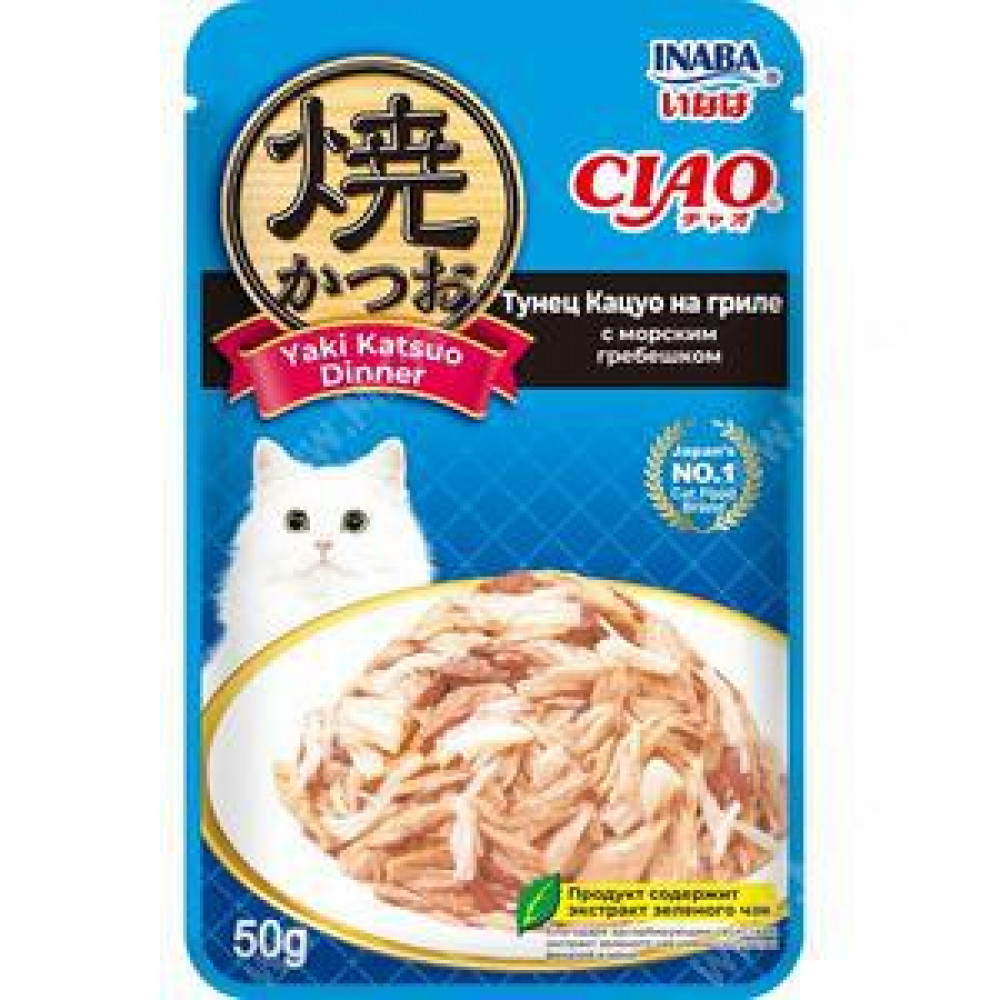 INABA Ciao Yaki Katsuo Dinner пауч 50гр д/кош Тунец Кацуо на гриле/Гребешок