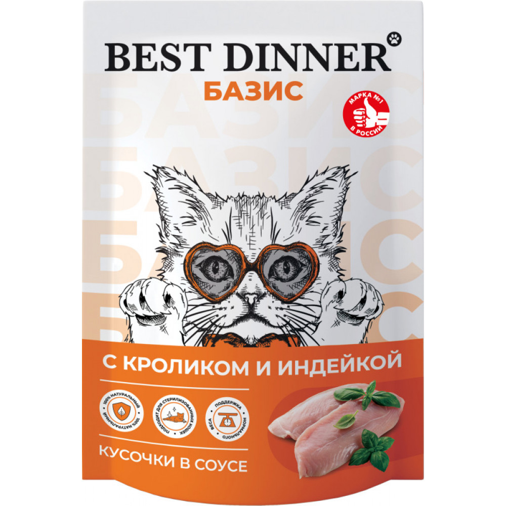 BEST DINNER Базис кусочки в соусе с кроликом и индейкой 75 г