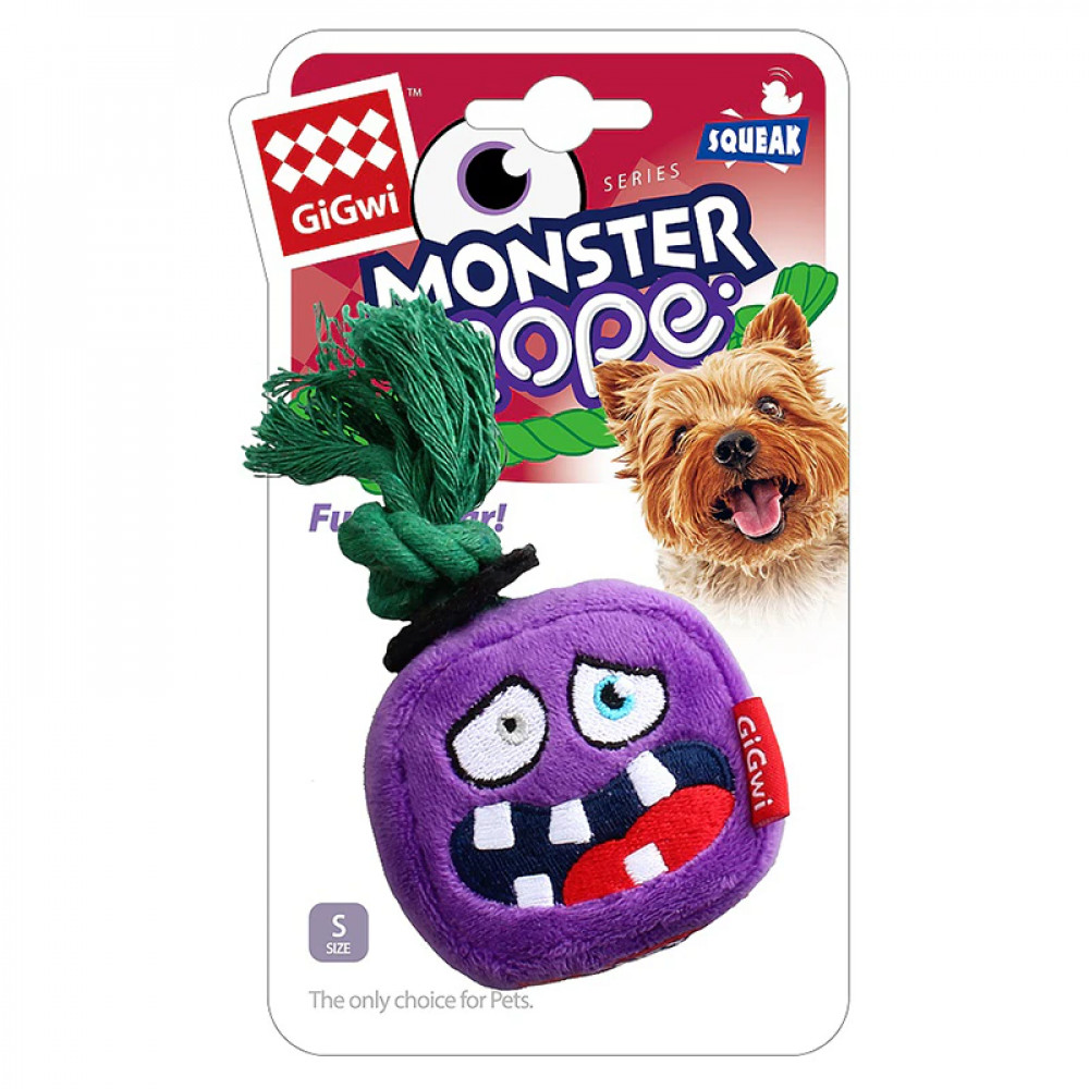 GiGwi 75433 Игрушка для собак Монстр с пищалкой и веревкой 8см, серия MONSTER