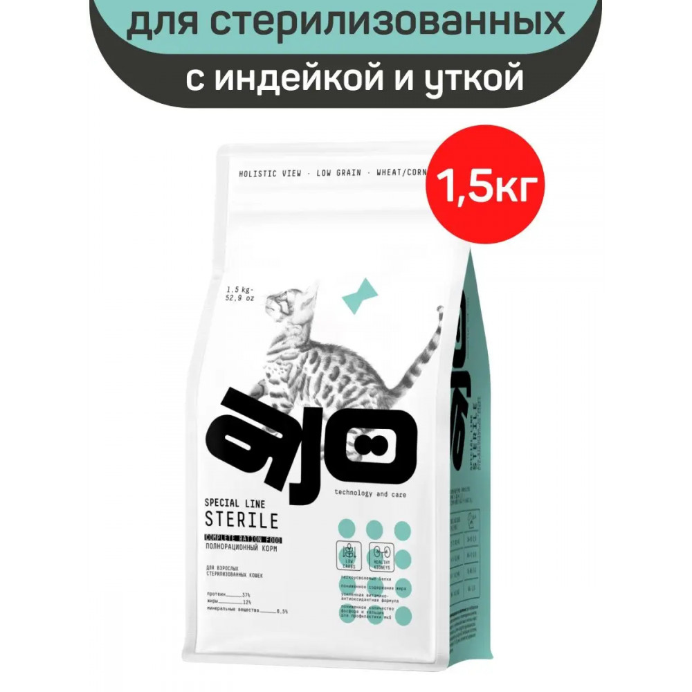 AJO Sterile Стерил. Индейка/Утка сух д/кош 1,5кг