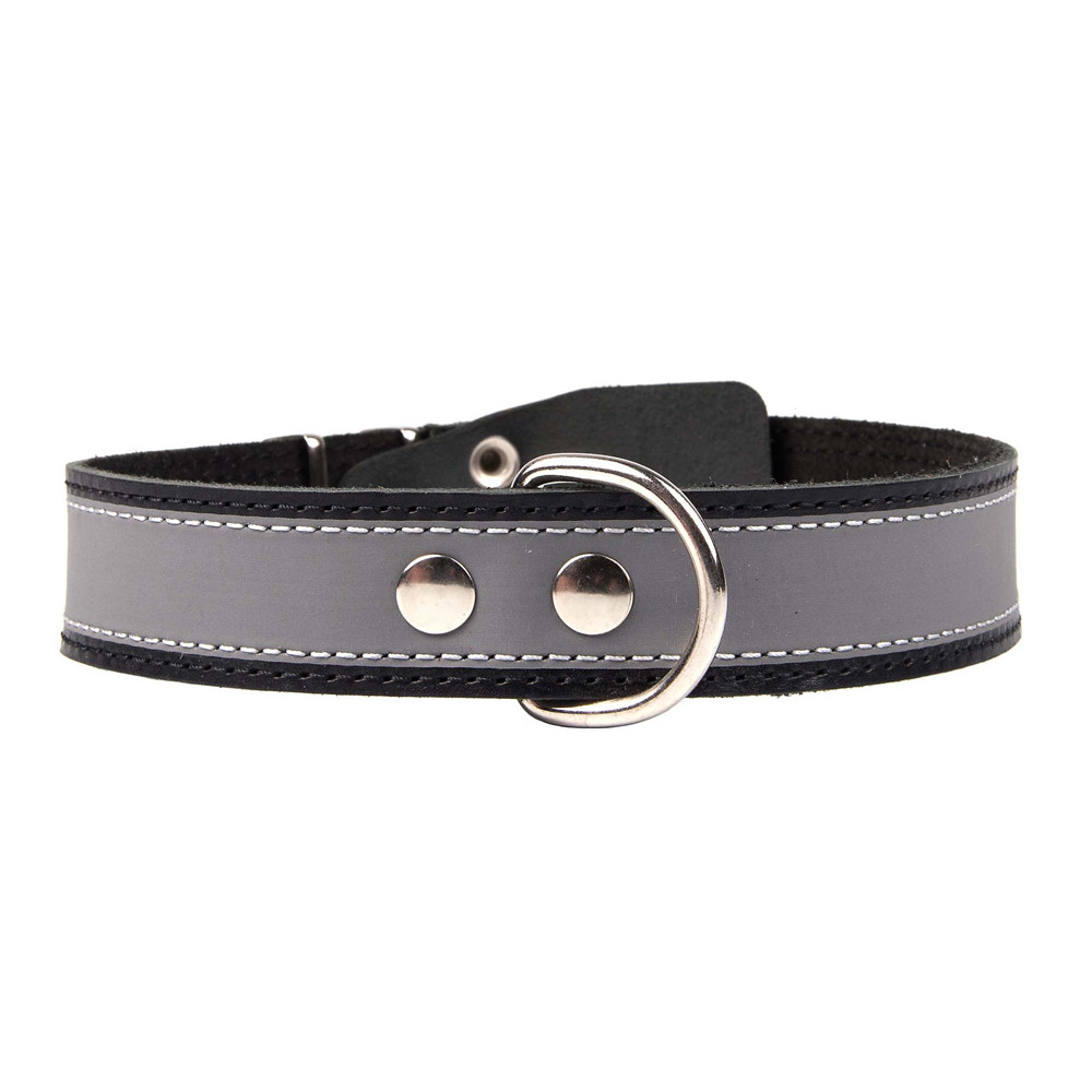 Однослойный ошейник шириной 35 мм средний со светоотражающей полосой, обхват шеи 53-68 см