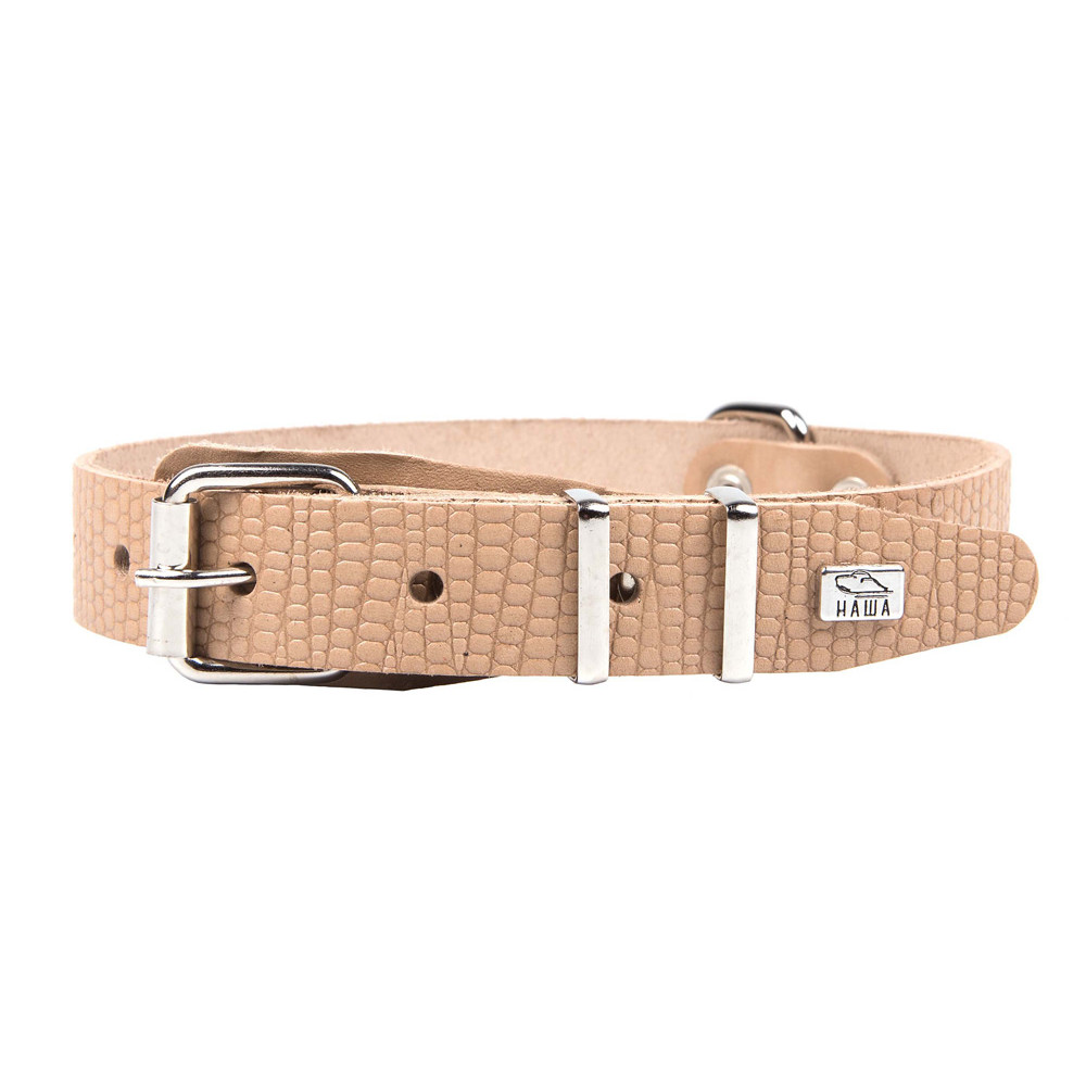 Однослойный ошейник шириной 25 мм с тиснением под рептилию, с металлической адресной биркой, обхват шеи 40-54 см, натуральная кожа, артикул Р25/1БИР