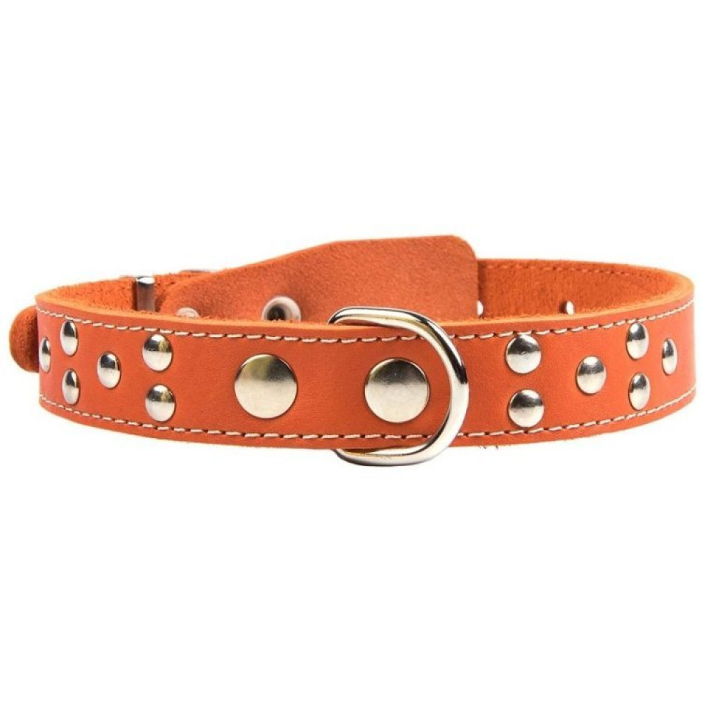Однослойный ошейник шириной 25 мм, украшенный металлическими заклепками, обхват шеи 39-53 см, натуральная кожа, артикул О25