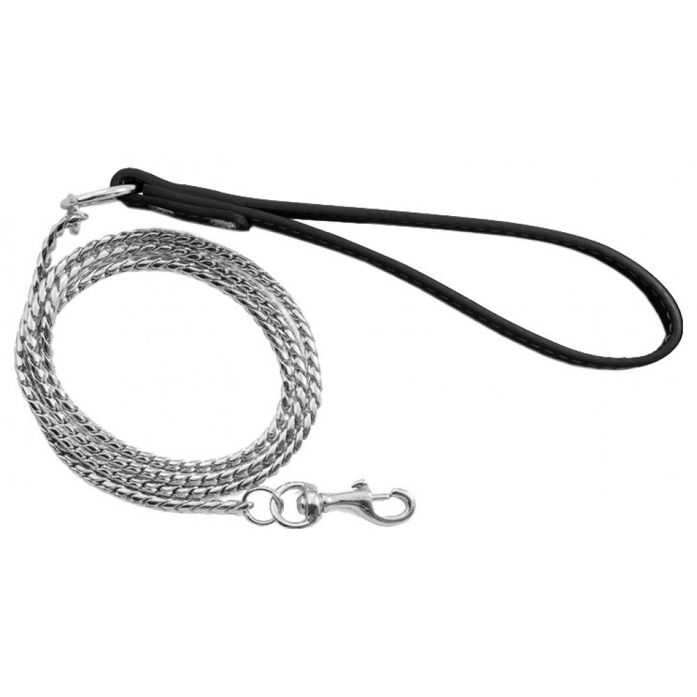 shy3011 поводок-цепь с кож. ручкой змейка серебристый, triol, 3x1100мм