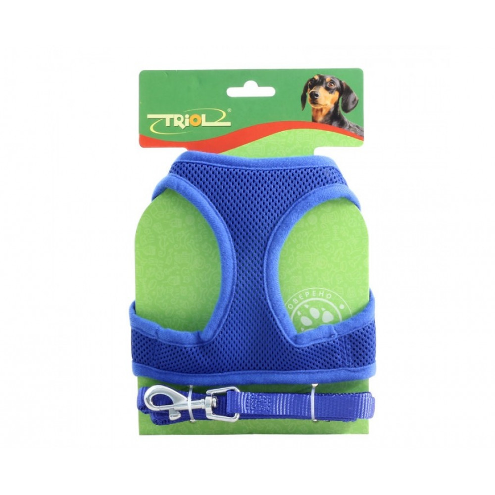 Мягкая шлейка-жилетка с поводком неоновый желтый.обхват груди 400 мм. поводок 15*1200 мм
