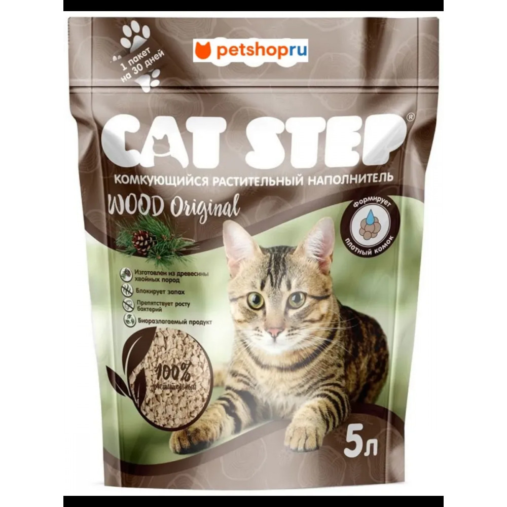 Cat Step 20323011 Наполнитель комкующийся растительный CAT STEP Wood Pellets 5л
