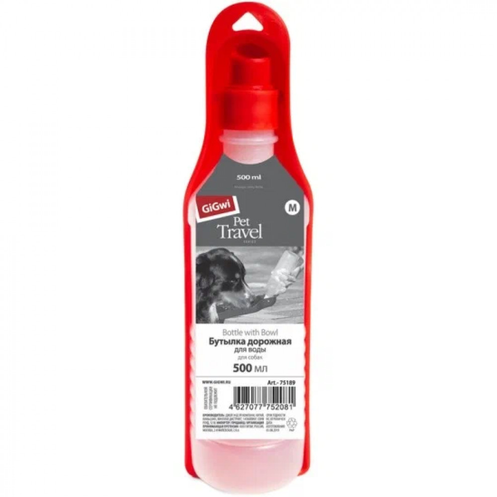 GiGwi 75189 Бутылка дорожная для животных 500мл, серия PET TRAVEL