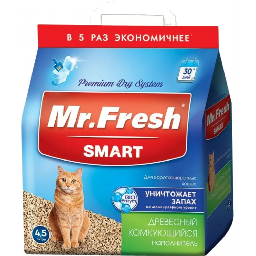 MR.FRESH Smart Наполнитель для туалета древесный для короткошерстных кошек 4.5 л