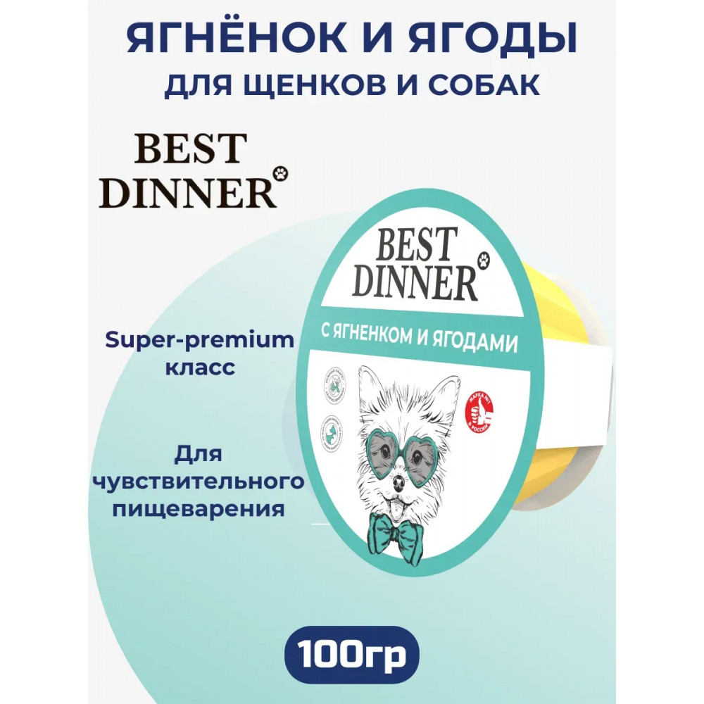 Best Dinner Влажный консервированный полнорационый корм для щенков С ЯГНЕНКОМ И ЯГОДАМИ 100г