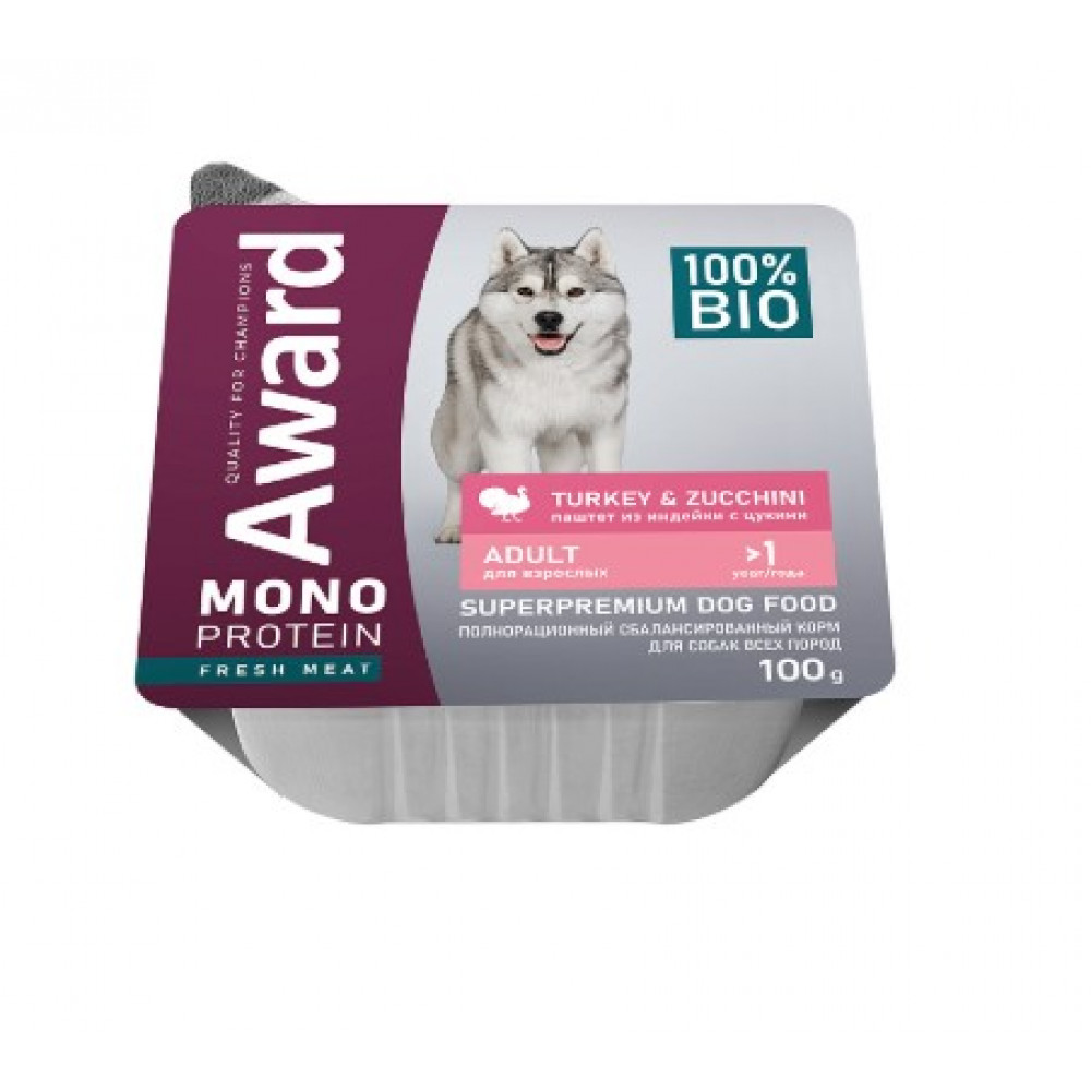 AWARD Monoprotein для взрослых собак паштет из индейки с цукини 100 г