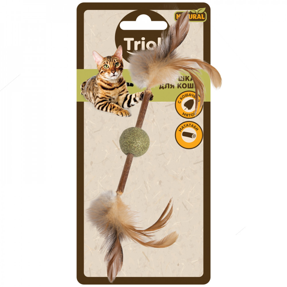 Triol 22171062 Игрушка NATURAL для кошек из мататаби Шарик с перьями, 120/200мм