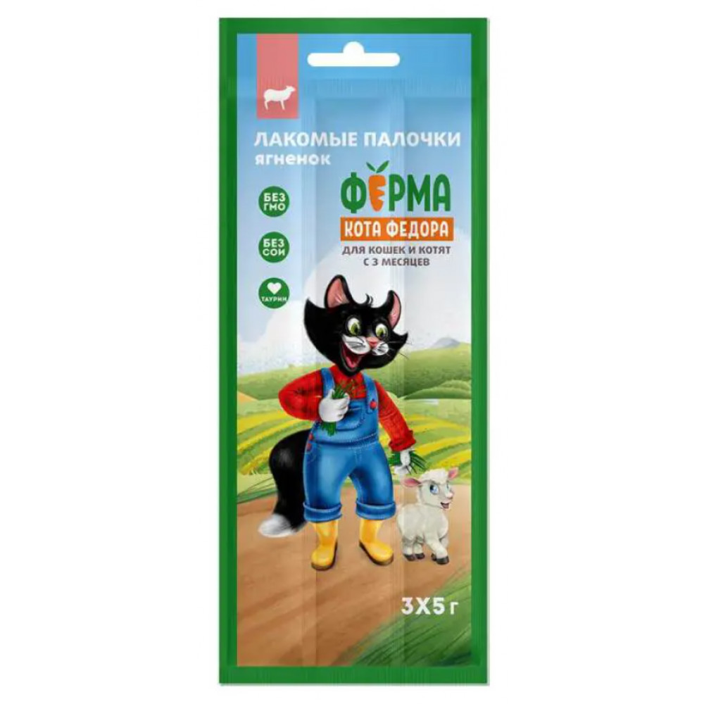 Лакомство ФЕРМА КОТА ФЕДОРА Палочки из ягненка 3х5 г